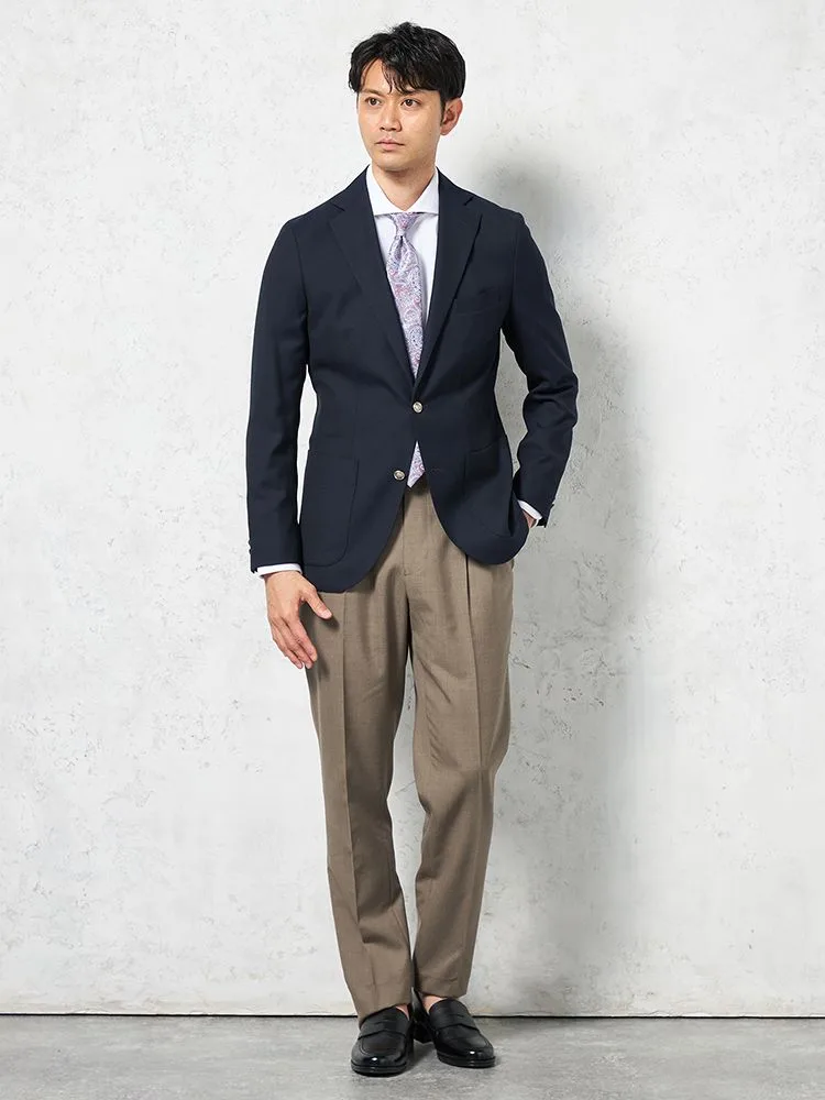 トラッドな着こなしをかなえてくれる紺ブレをベースにデザイン。