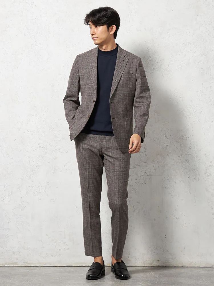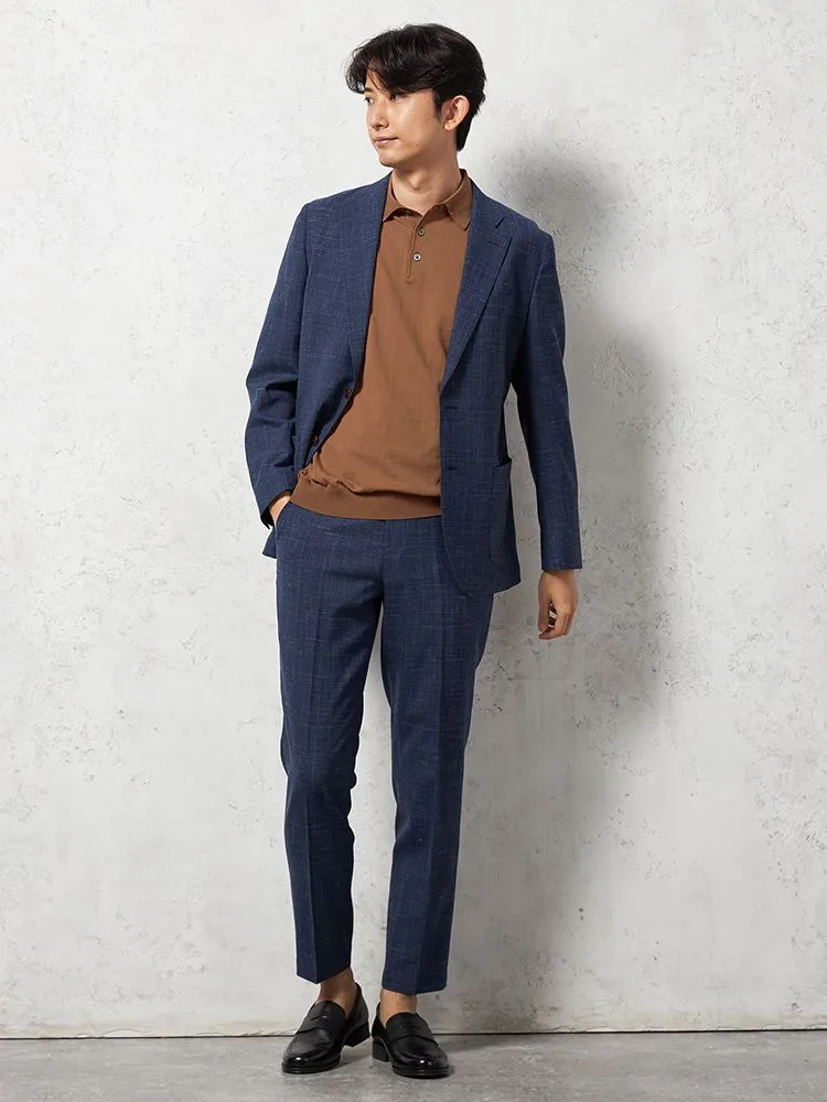 2つボタンのデザインで、クラシックなスタイルを演出。落ち着きと品のあるアイテムです。