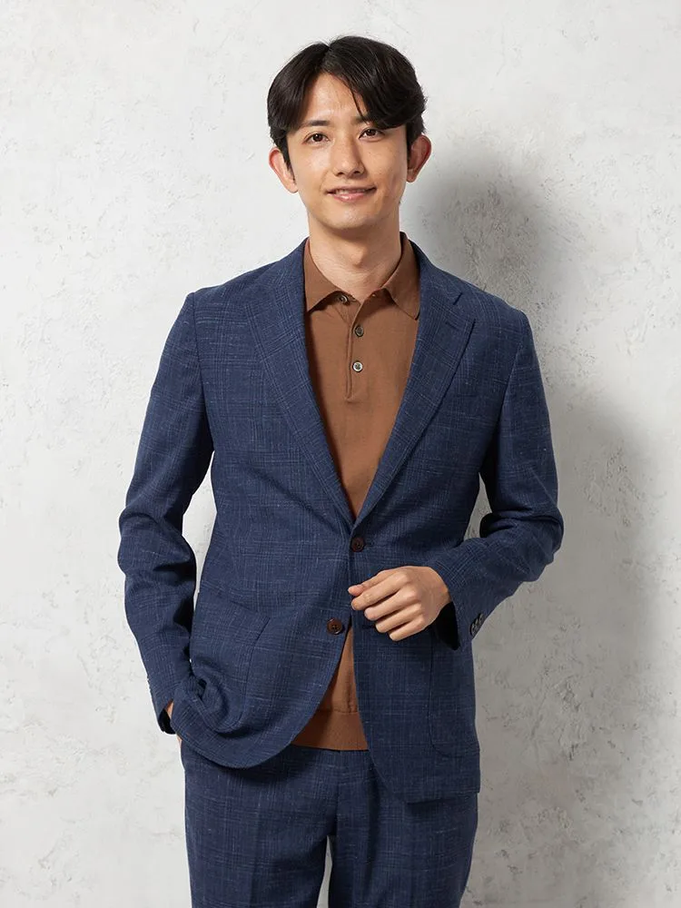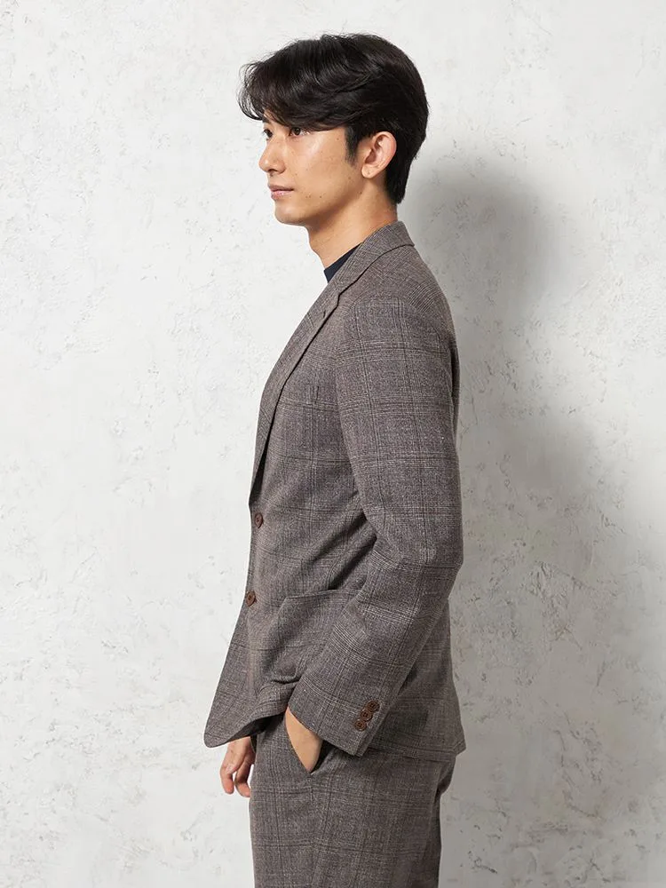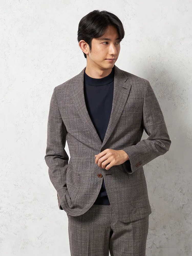 夏のトラッドを堪能できる、グレンチェックの2つボタンジャケットです。
