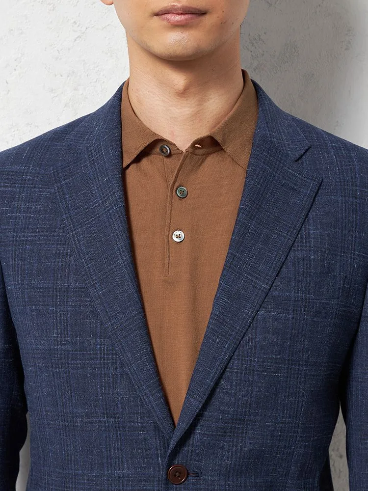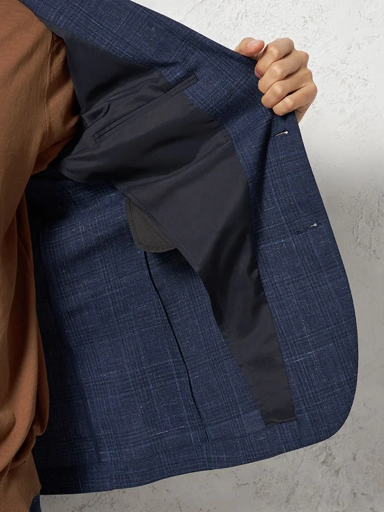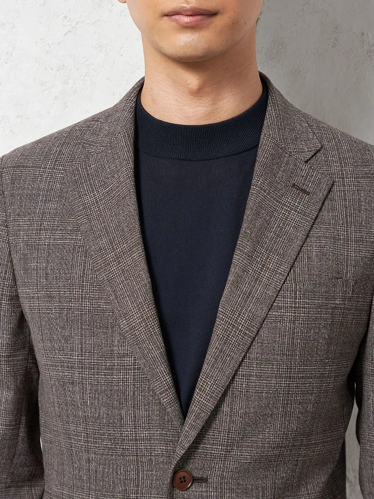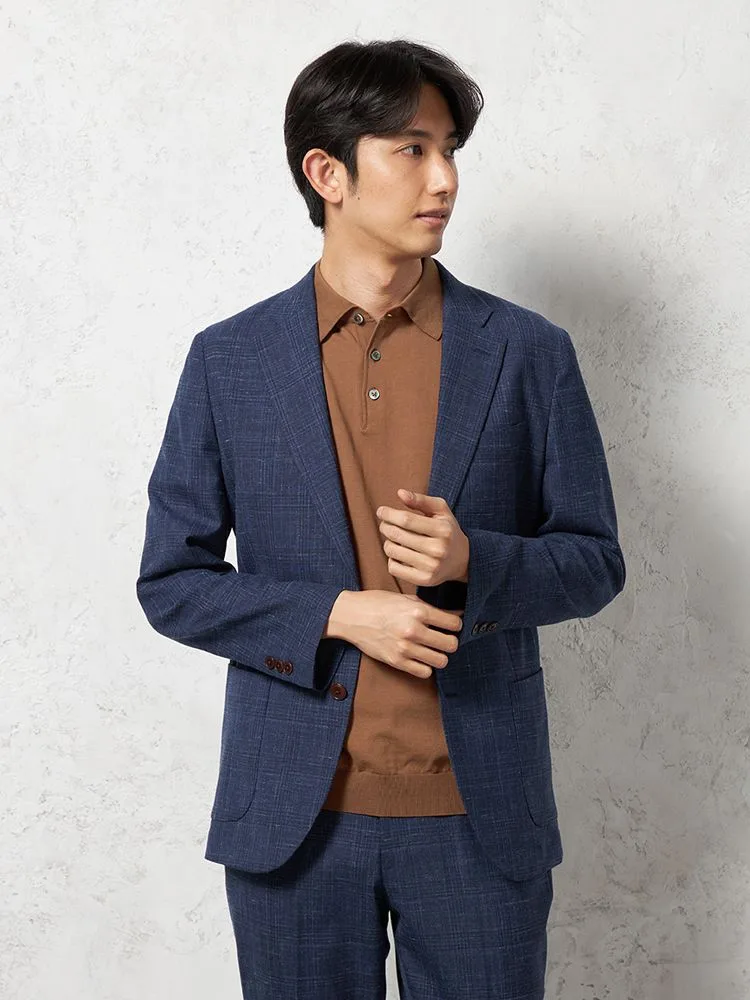 【ウール・リネン混】ジャケット2つボタン【イタリアREDA社製】軽量チェック春夏