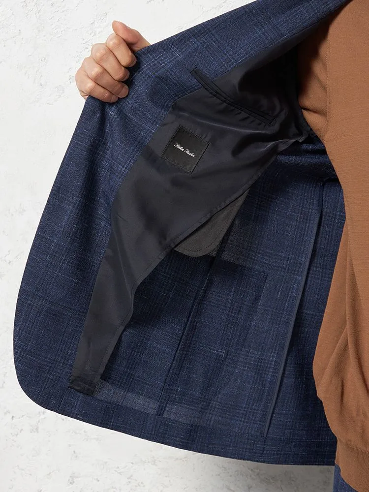 【軽量】ジャケット2つボタンリネン混【REDA社製生地】ネイビーチェックRUCKENBACCHAR春夏