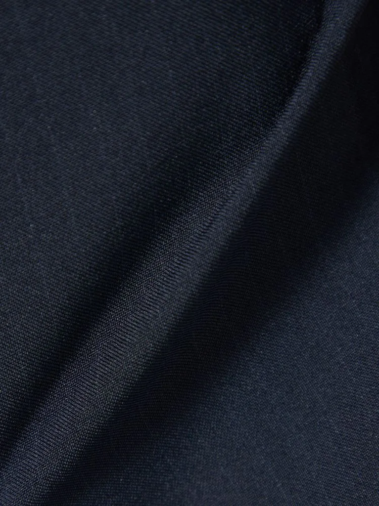 ストレッチ素材による着心地と、丈夫でシワになりにくく洗濯機で上下丸洗いできるイージーケア性が特長。