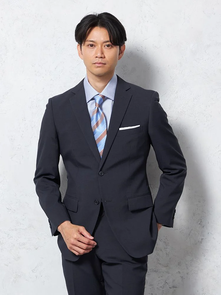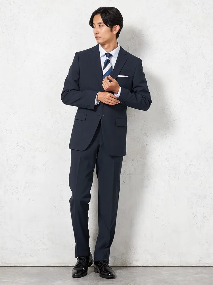 【即納】スーツ2つボタン【WEB限定】上下ウォッシャブルネイビーシャドウストライプ