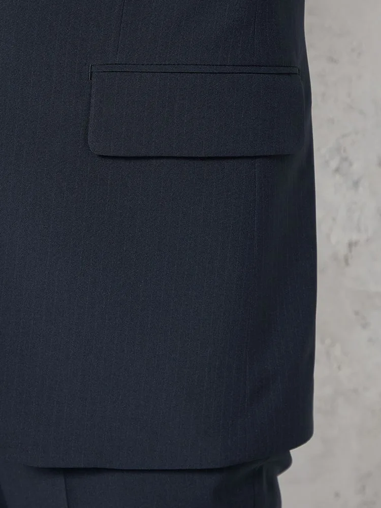 【即納】スーツ2つボタン【WEB限定】上下ウォッシャブルネイビーストライプ