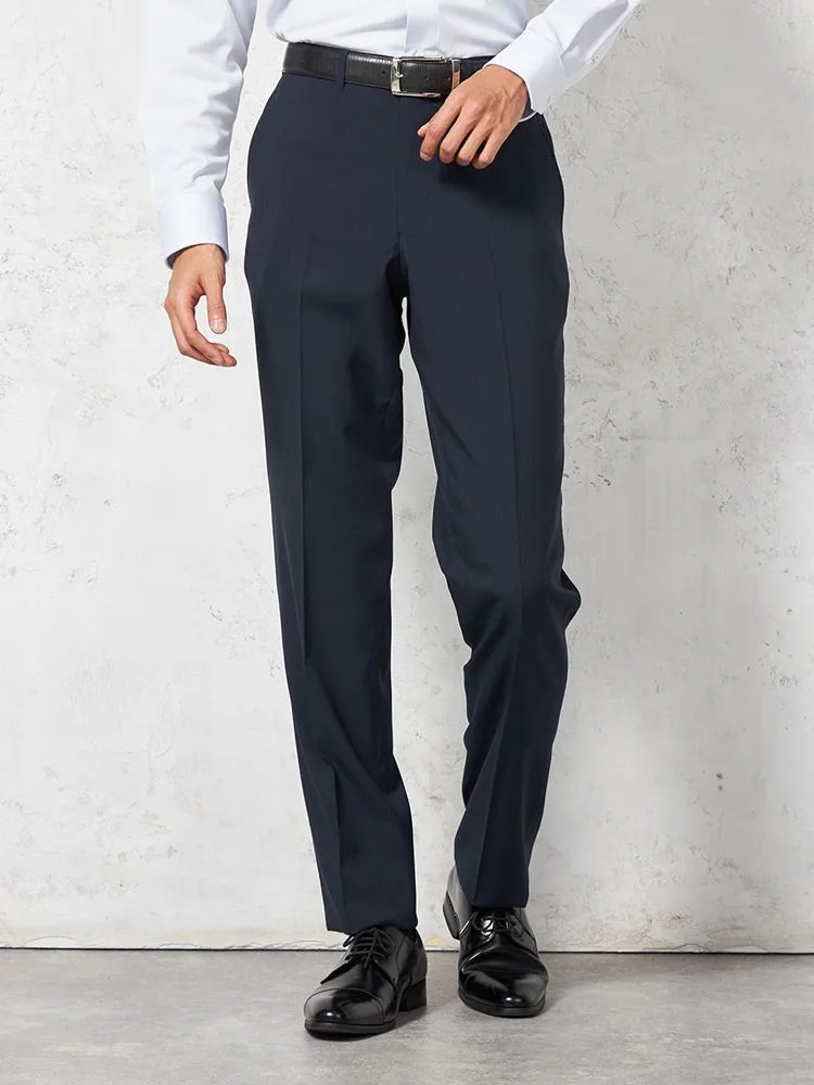 ラペル幅はベーシックに、スラックスはすっきりとしたノータック仕上げで、いずれも汎用性の高いアイテムです。