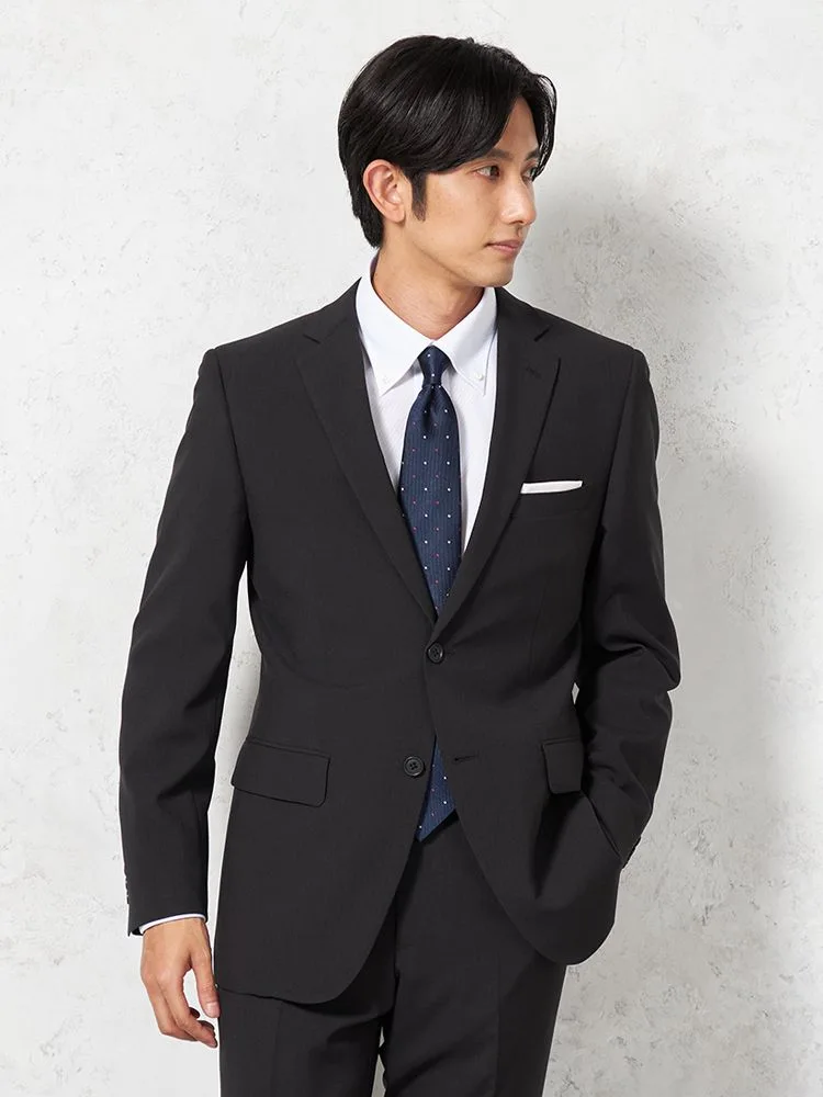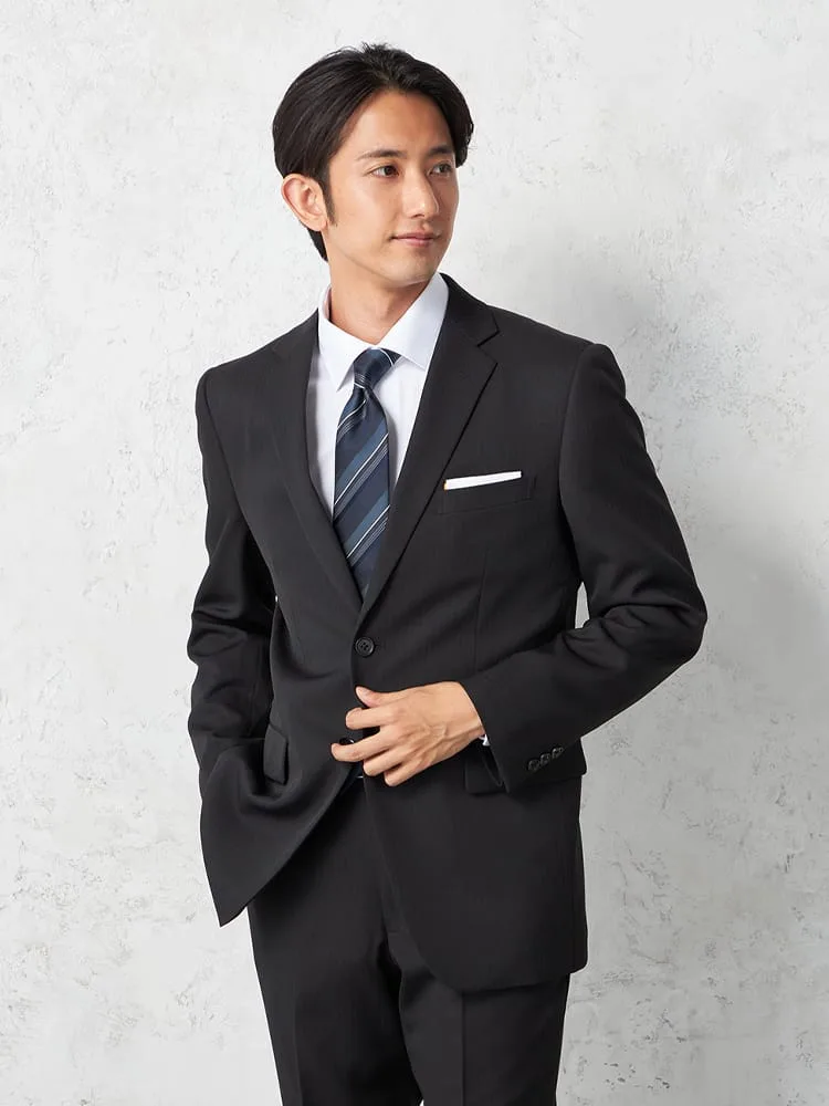 【即納】スーツ2つボタン【WEB限定】上下ウォッシャブルブラックストライプ