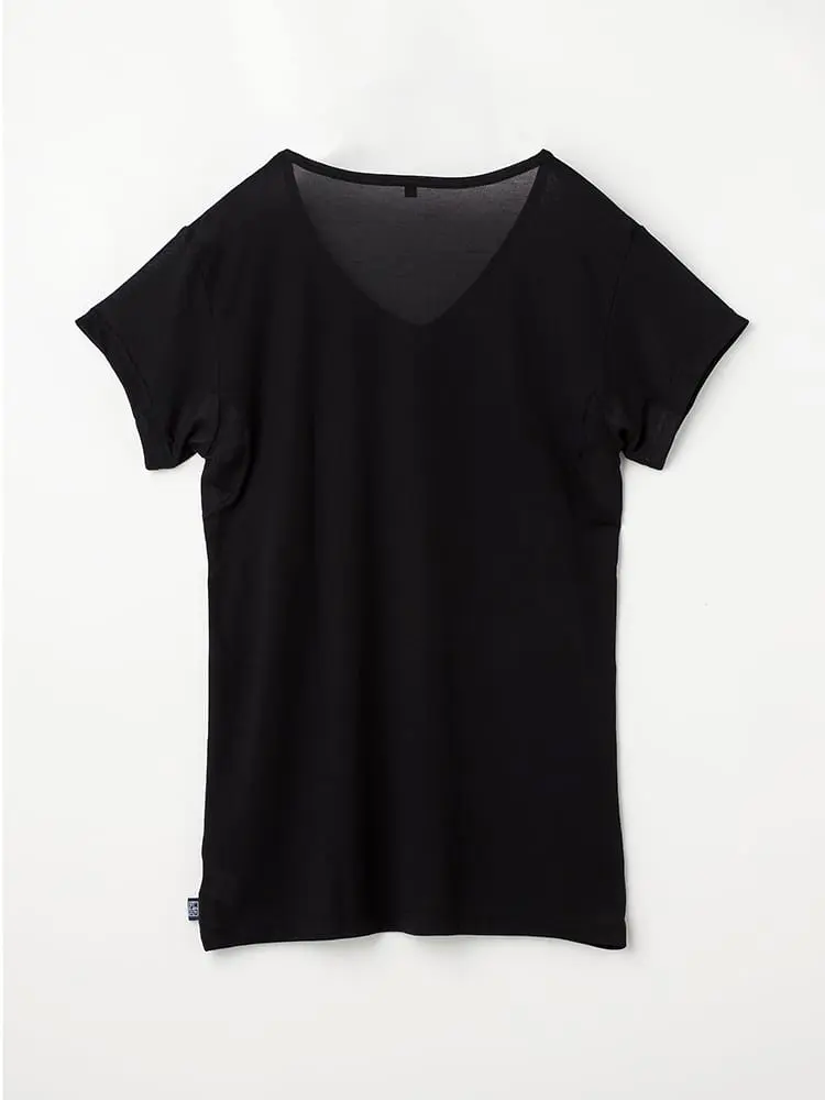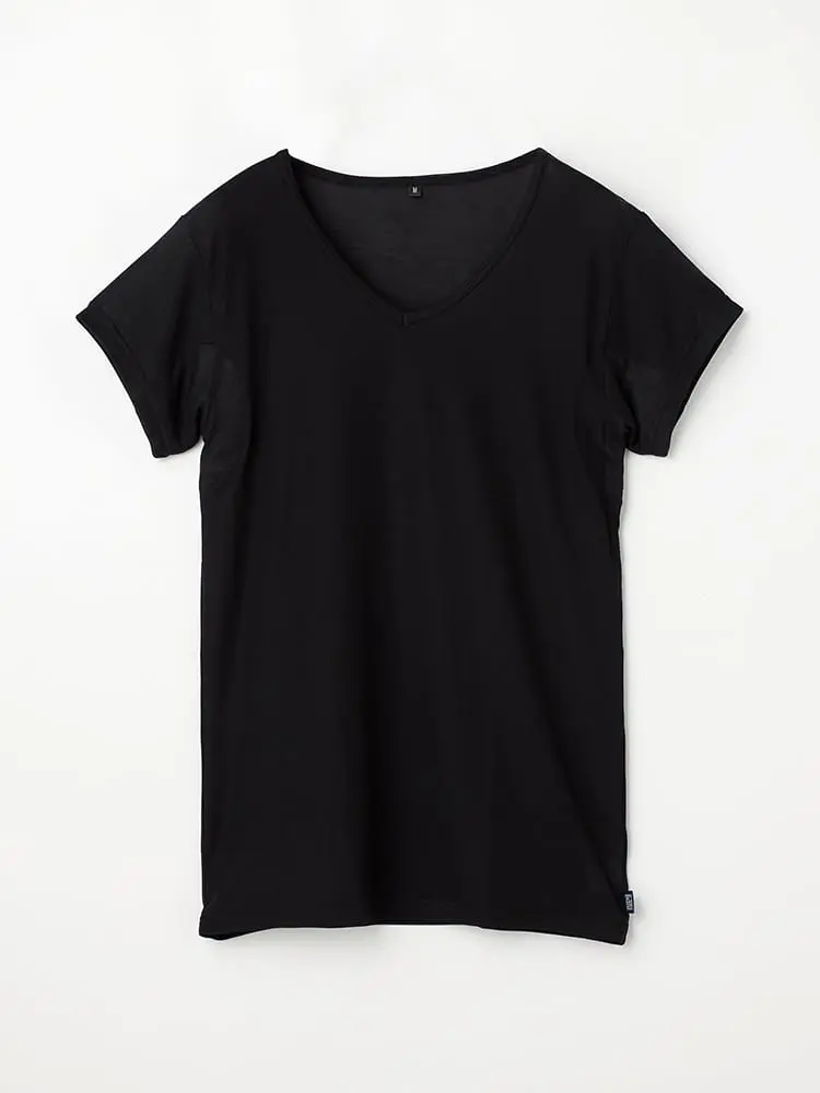 動きやすい半袖&シャツから覗かないVネック仕様。