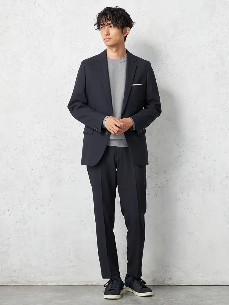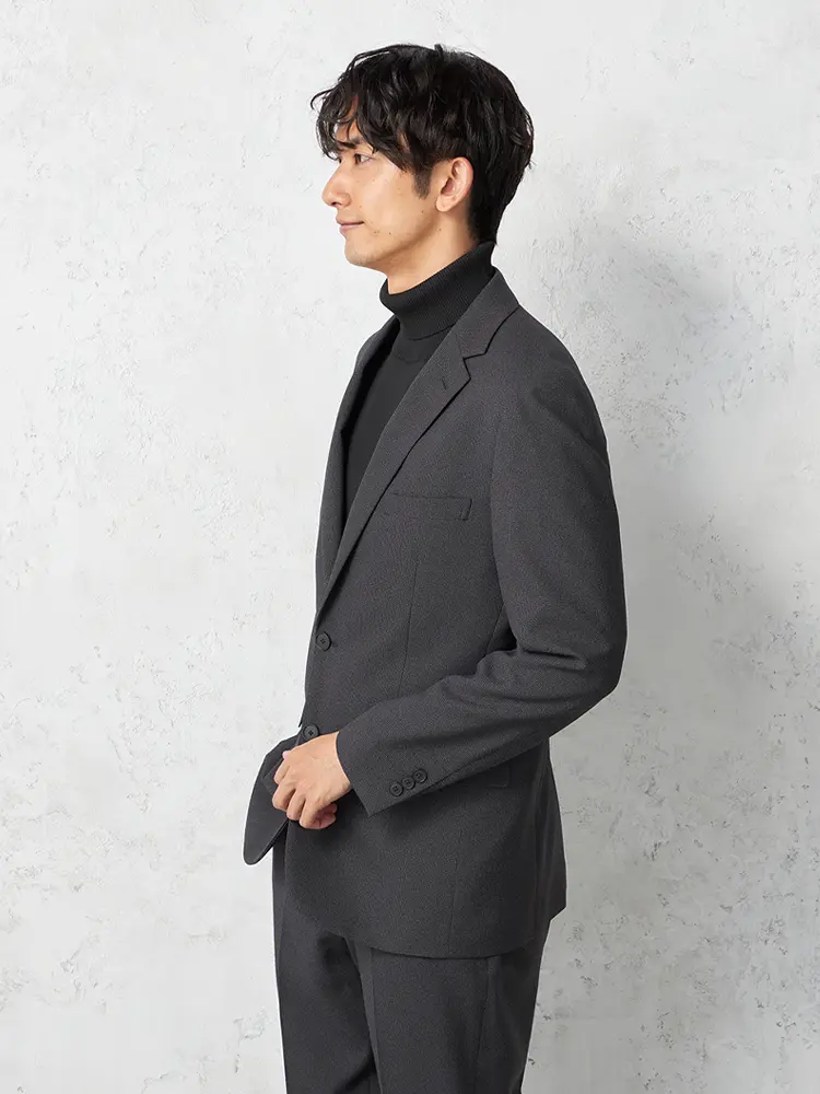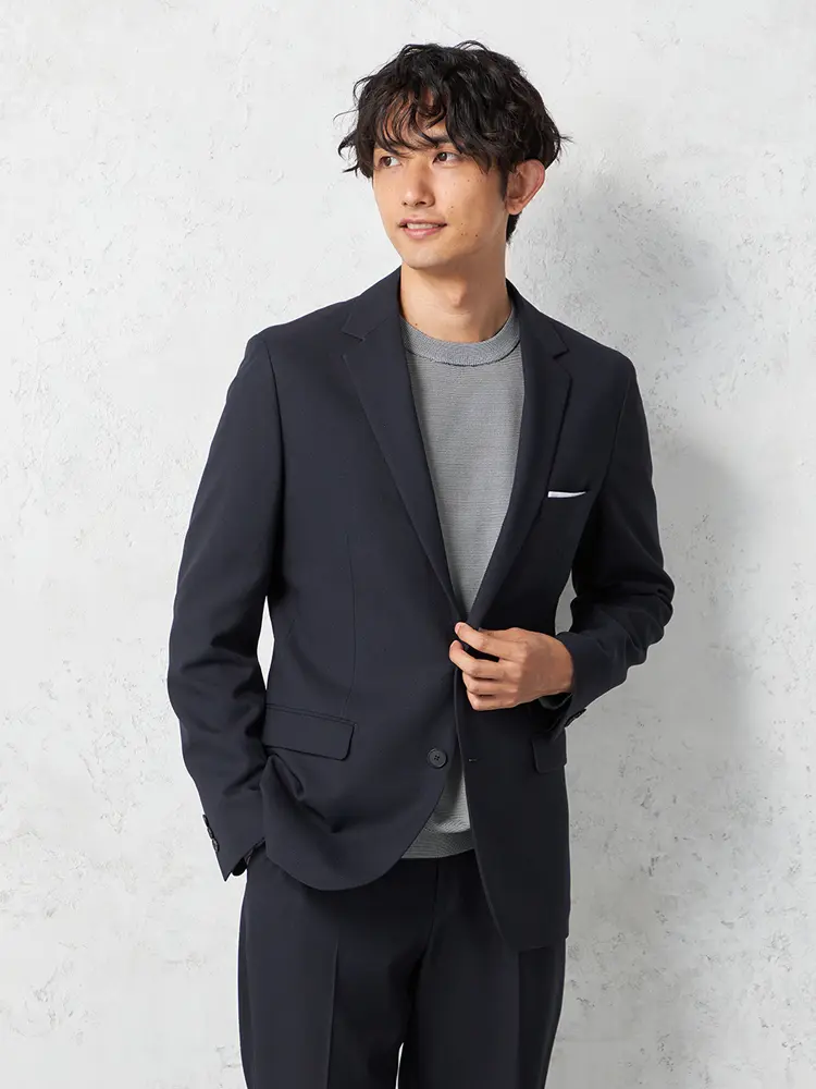 タテ・ヨコに伸びる2WAYストレッチ生地で仕立てた、スタンダードな2つボタンテーラードジャケットです。