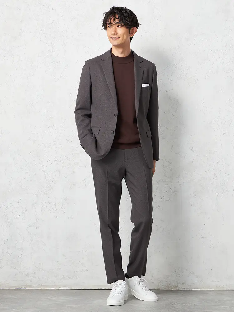 【TOKYO RUN】 アムンゼン セットアップ ジャケット 2つボタン 無地 ウォッシャブル ストレッチ 秋冬(D.ブラウン)