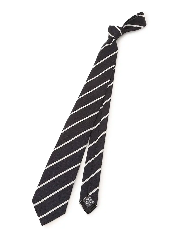 【シルク混】ネクタイレギュラーリクルートタイネイビーストライプnero通年