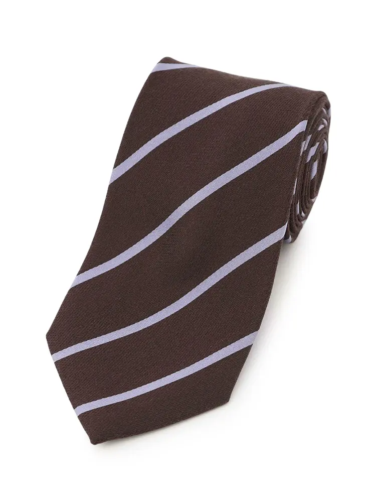 【リッケンバッカーブラック】 シルクウールネクタイ ストライプ レギュラー 秋冬(D.ブラウン)