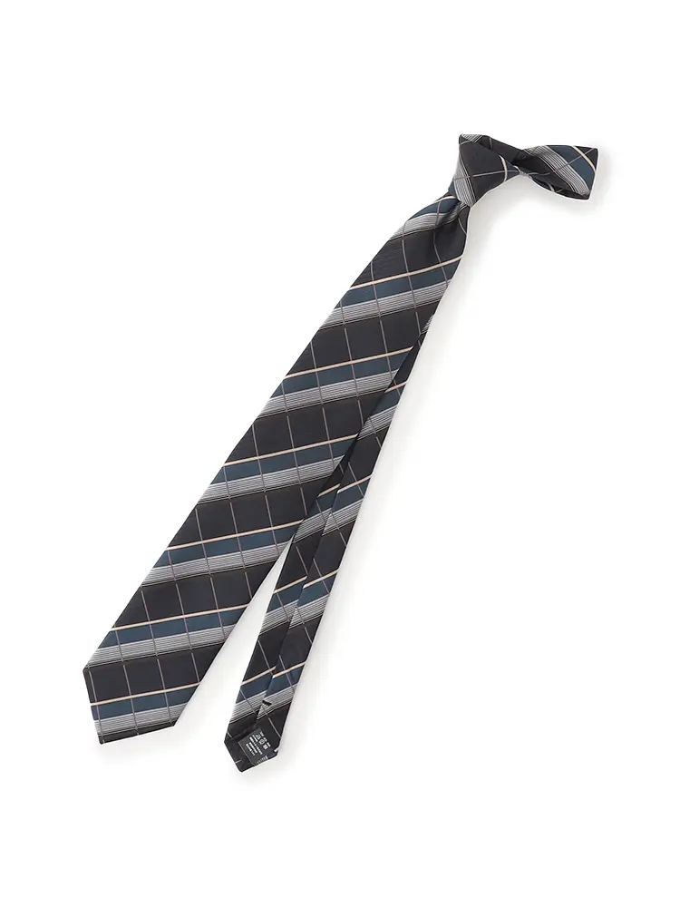 格子状ながらもカジュアル感はなく、レジメンタルネクタイのようなシャープな印象を備えたネクタイです。