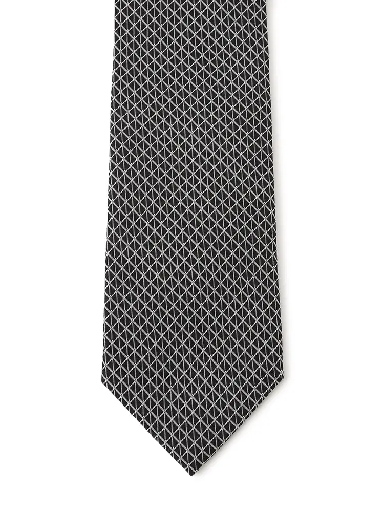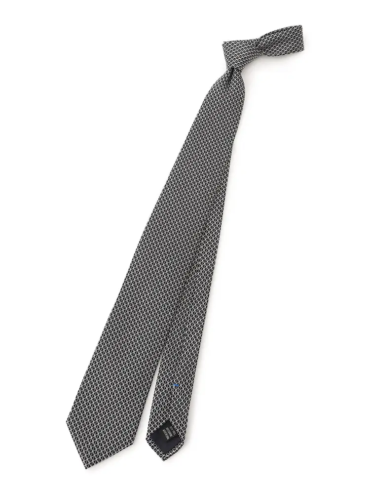 格子模様を基調とした、細やかな総柄のネクタイです。
