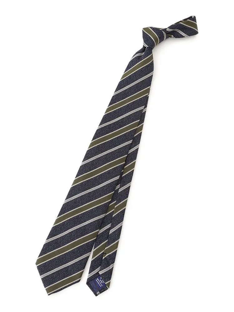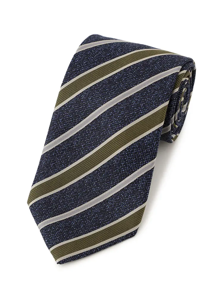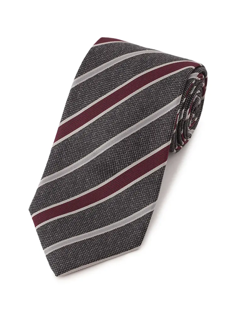 さまざまな織地をミックスした、レジメンタルストライプのネクタイです。