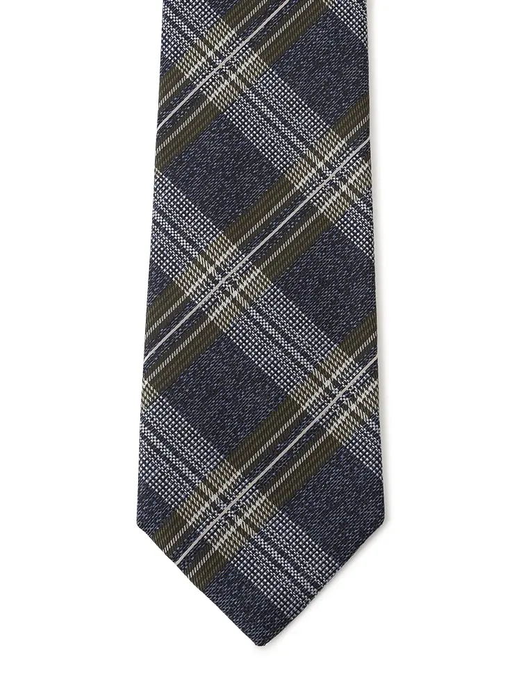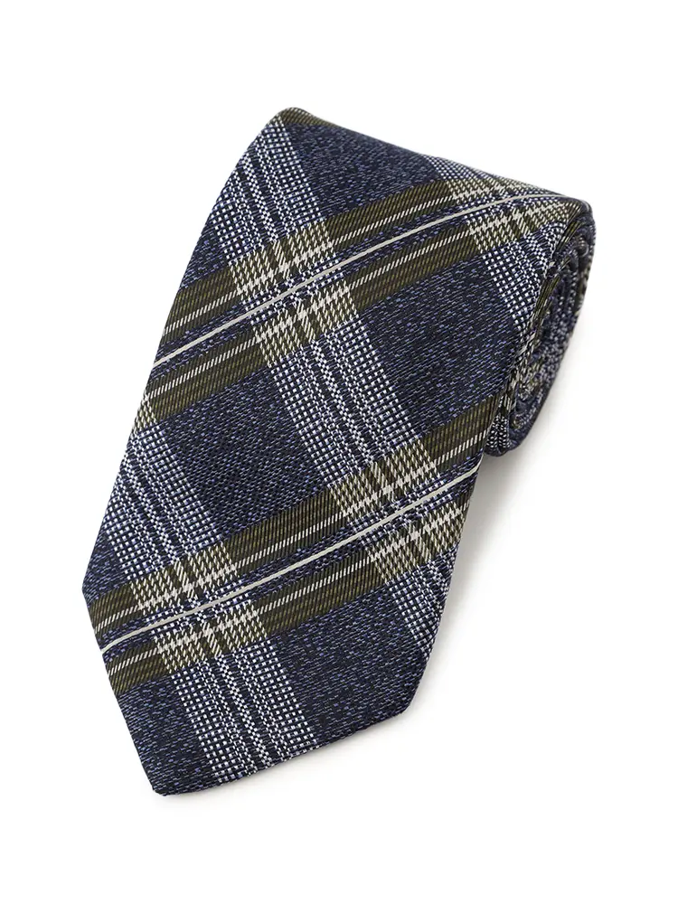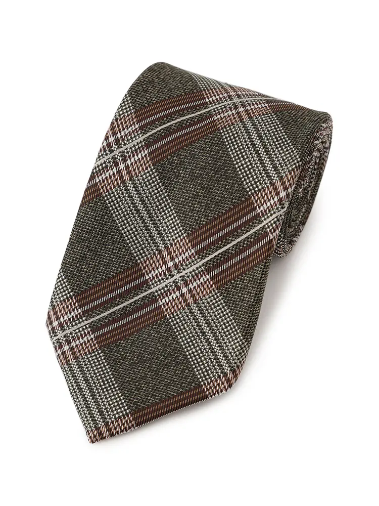 Vゾーンのアクセントとして活躍するチェック柄のネクタイ。