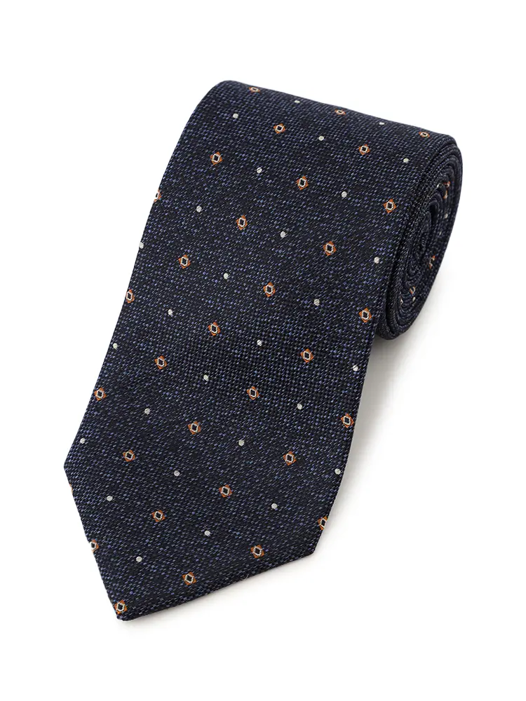 やや軽やかな印象を纏った、小紋柄のネクタイです。