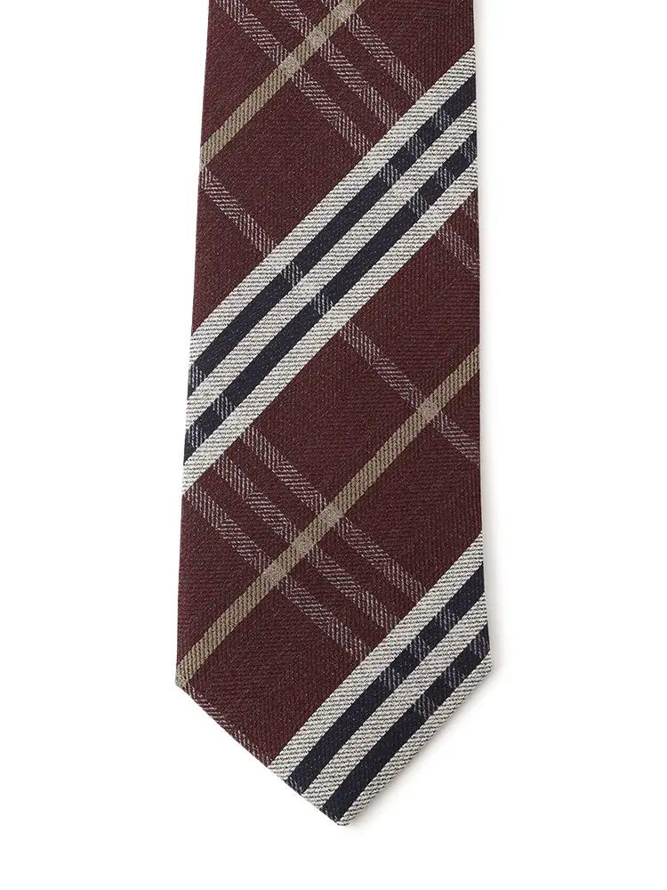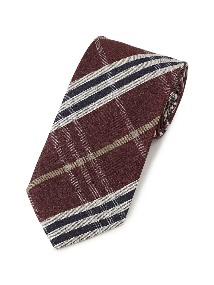 【ストーベル&メイソン】日本製ネクタイ チェック 秋冬(ワイン)