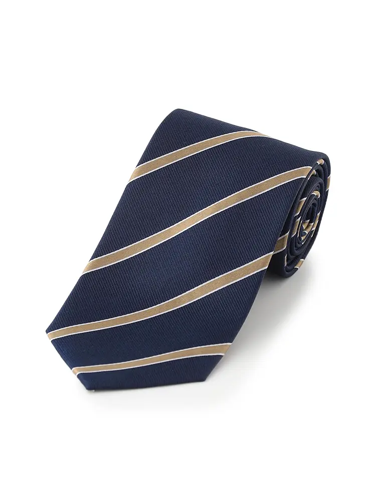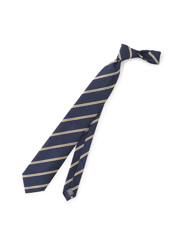 【シルク混】ネクタイレギュラーリクルートタイネイビーストライプnero通年