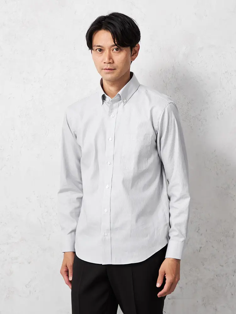 ワードローブにそろえておきたい、毎日のビジネススタイルにぴったりな長袖ボタンダウンシャツです。