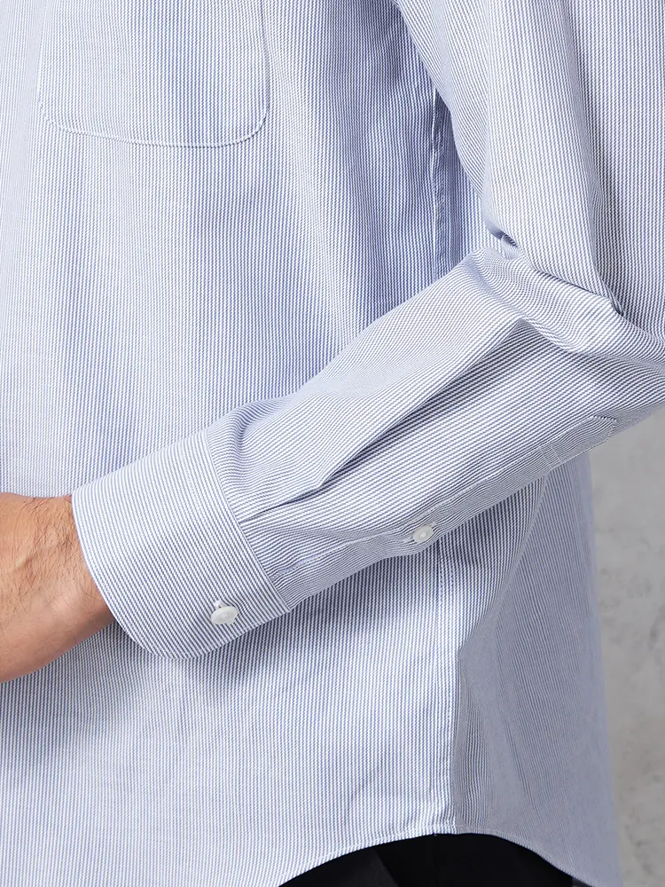 爽やかな印象のストライプ柄の綿100% ビジカジシャツで、あわせるコーデを選ばずお使いいただけます。