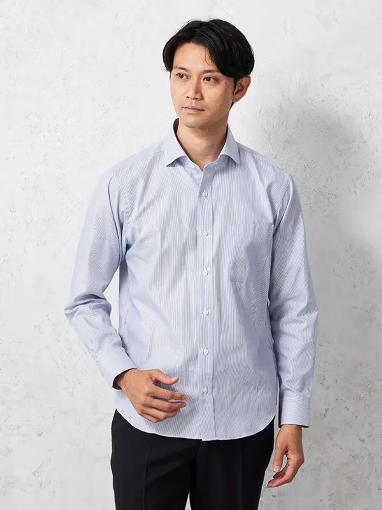 【即納】WEB限定【完全ノーアイロン】長袖アイシャツセミワイドストレッチシャドウストライプi-shirt通年