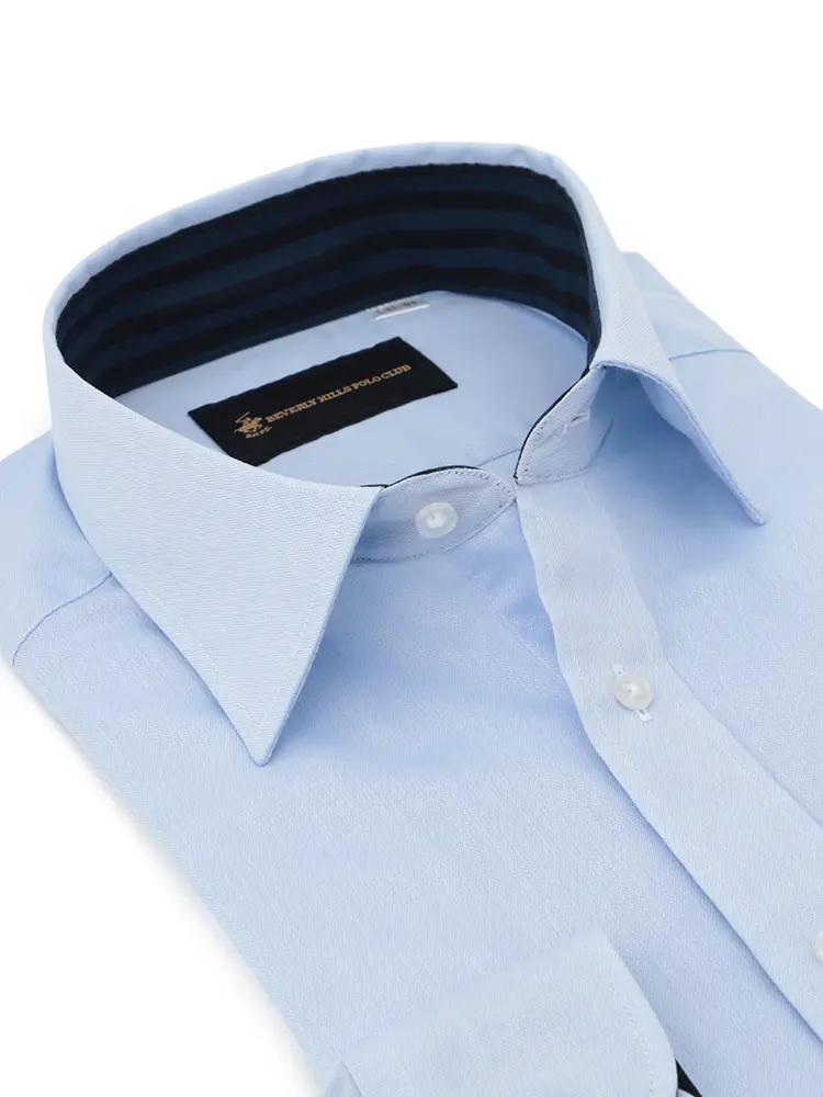 【ビバリーヒルズポロクラブ】 サックスドビー 長袖Yシャツ ワイド ヘリンボン 形態安定 通年
