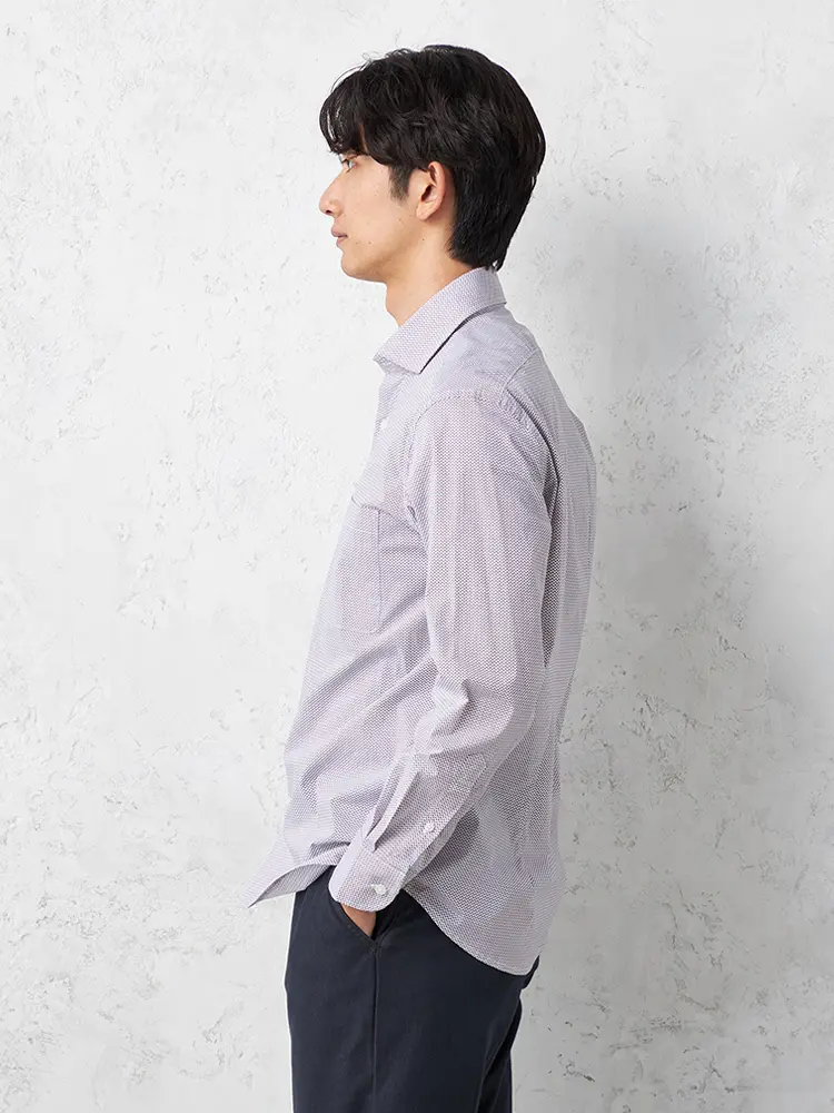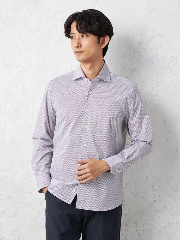 【RUCKENBACCHAR】 ドット柄 ホリゾンタルカラー ビジカジシャツ 長袖Yシャツ プリント 通年