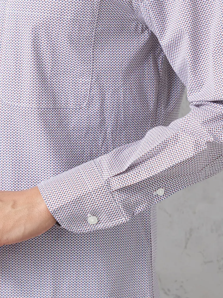 コーディネートの差しアイテムに取り入れたい、総柄デザインの長袖シャツ。
