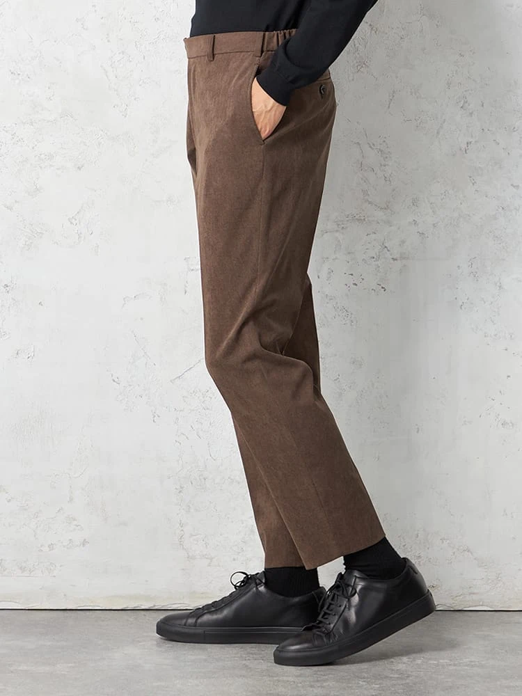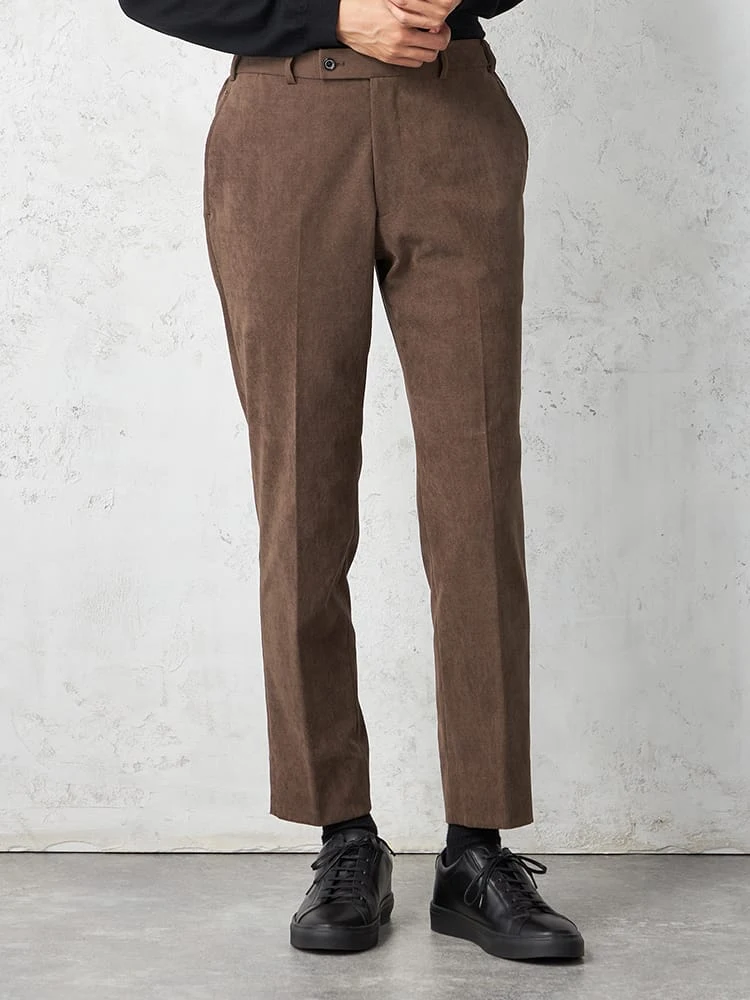 オンオフ兼用可能な、コーディロイ素材のスラックスです。