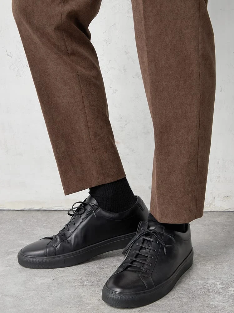 パンツの腰回りに生地の折り込みがなく、スッキリとしたシルエットを実現します。シンプルで洗練された印象を与え、すっきりとした着こなしが可能です。
