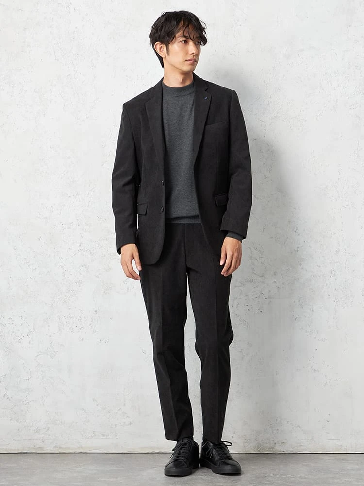 暖かみのあるコーデュロイ素材の2つボタンテーラードジャケットです。