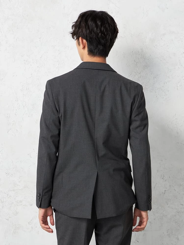 切り込みが1本のセンターベントデザインです。細身でスッキリとしたシルエットが特徴で、快適な着心地を提供します