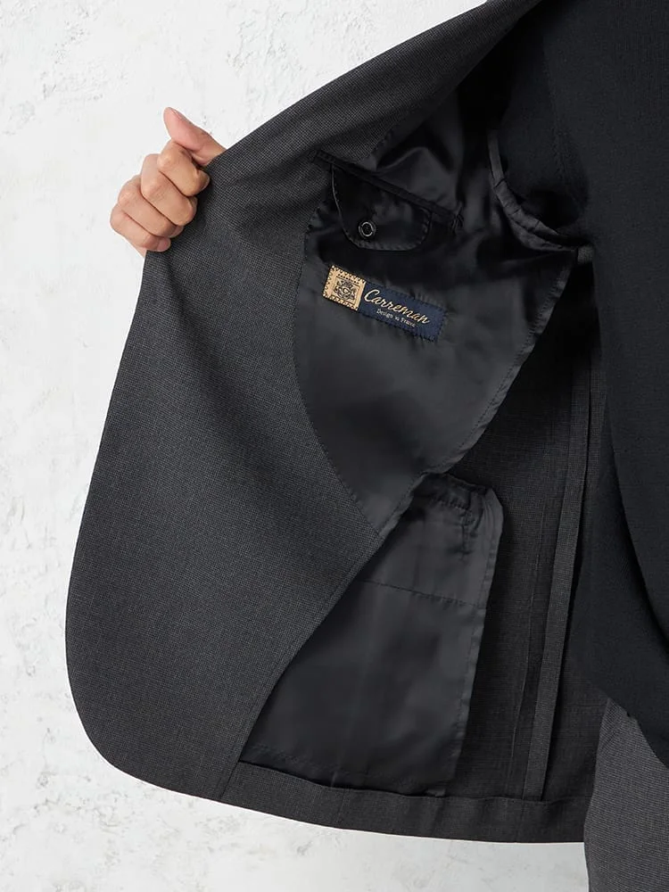 シックなグレーの、ハウンドトゥースチェック柄2つボタンテーラードジャケットです。