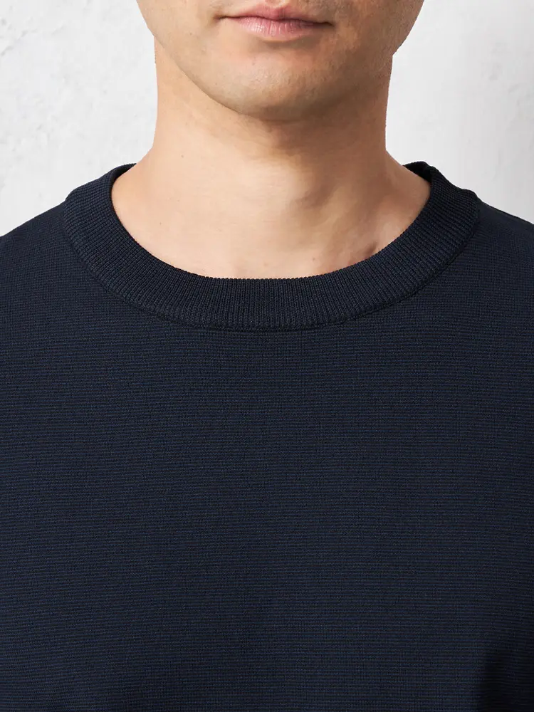 【TOKYO RUN】 14G天竺 ミジンボーダークルーネックニット カジュアルインナー 長袖 ウォッシャブル 抗ピリング 吸汗速乾 秋冬(ネイビー)