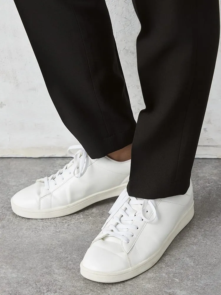 スタイリングをシャープに仕上げるノータックのスラックス。