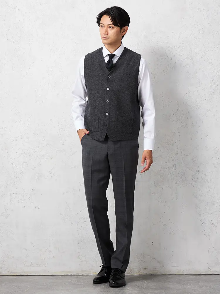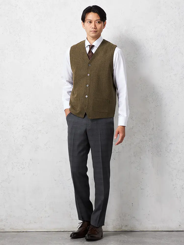耐久性と保温性に長けており、秋冬のビジネススタイルのアクセントにおすすめの一枚です。