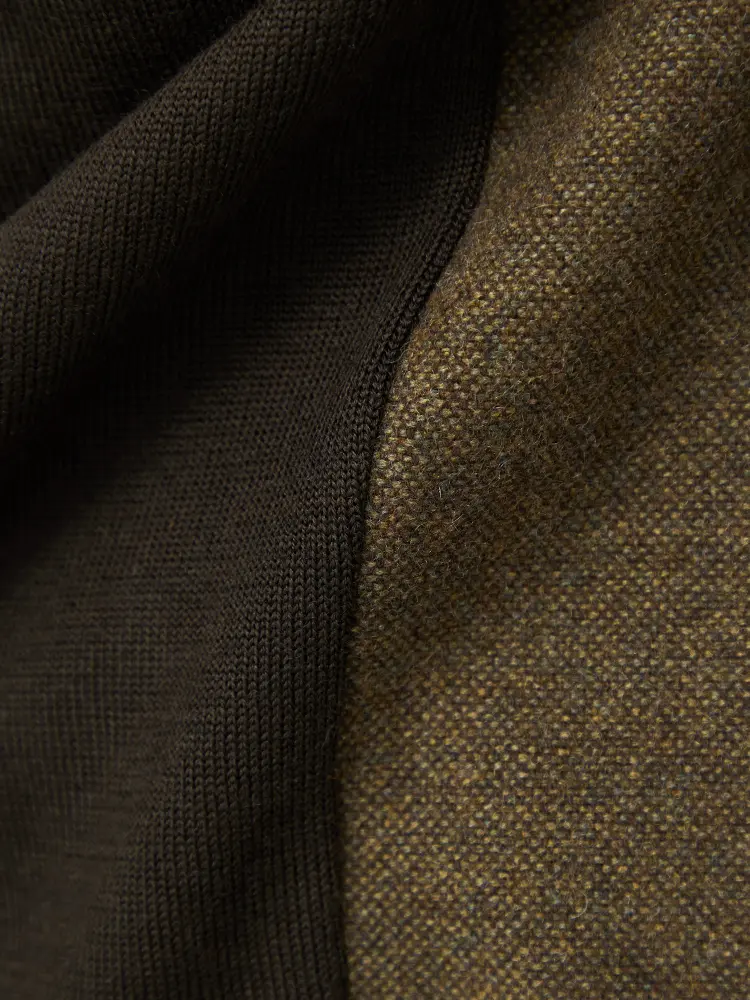 後ろ身頃をニット素材を切り替えて、リラックス感のある着心地に。