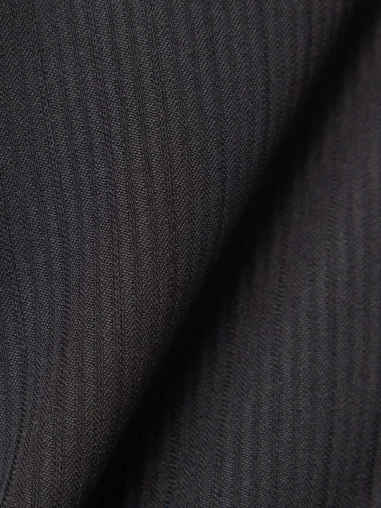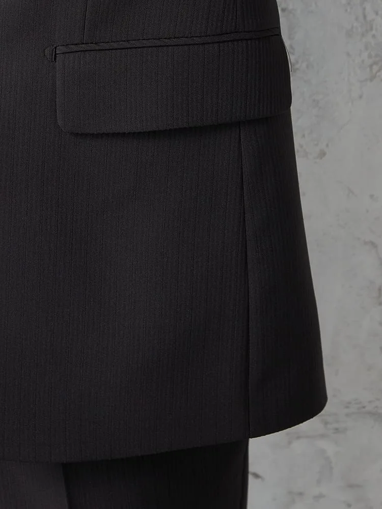 落ち着いた雰囲気のブラック×シャープなストライプ柄のスーツ