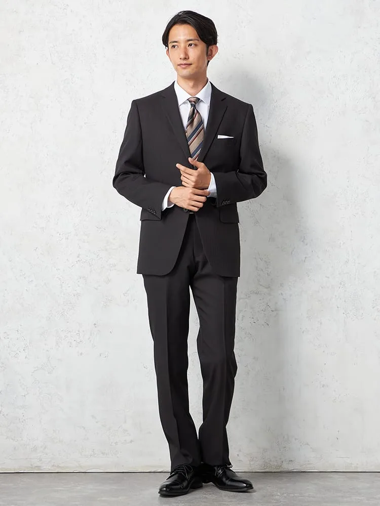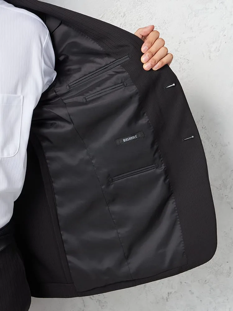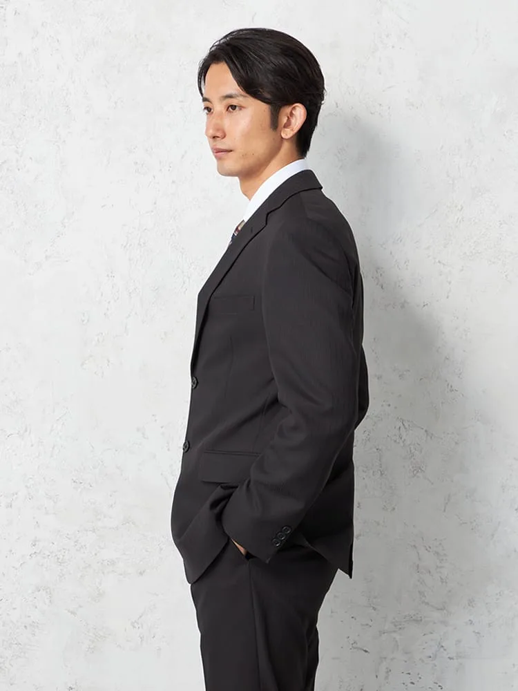 【即納】【WEB限定】スーツ2つボタンブラックシャドウストライプ上下ウォッシャブル3シーズン対応