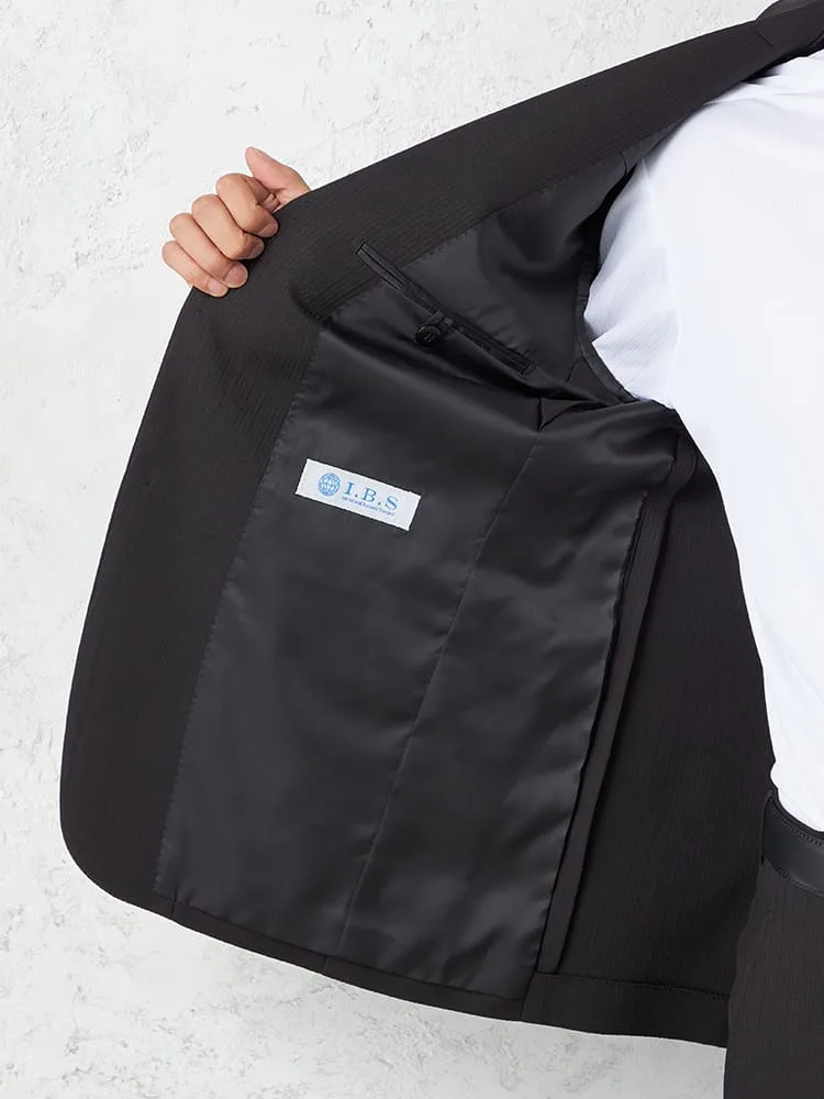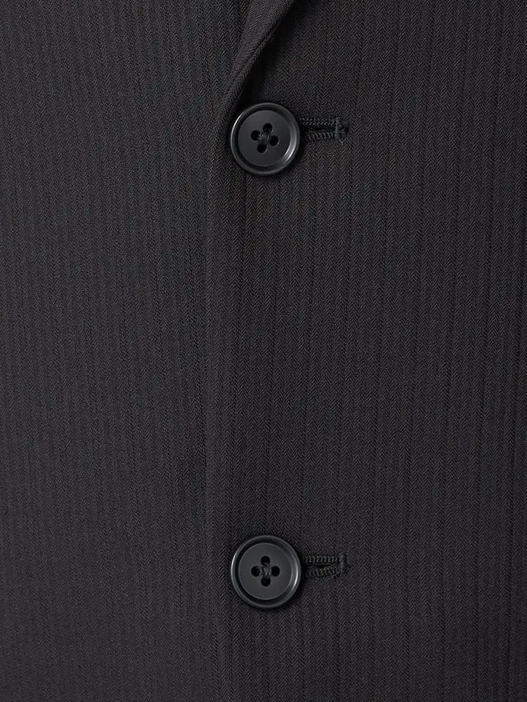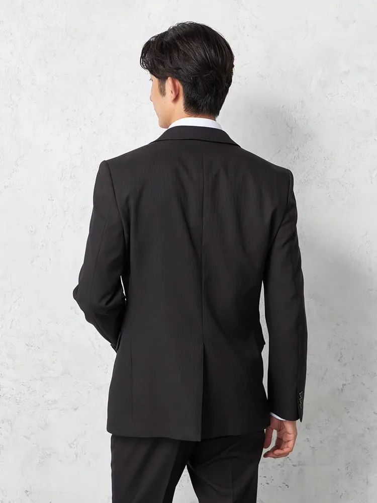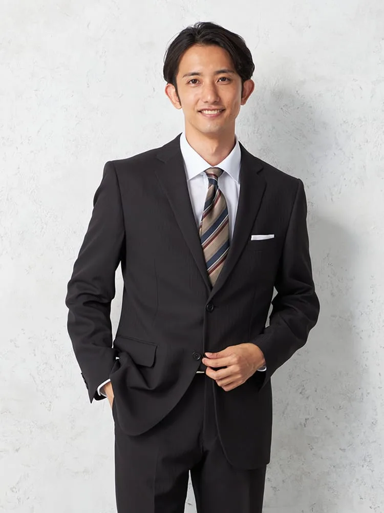 【即納】スリーピーススーツ2つボタン【WEB限定】上下ウォッシャブルブラックシャドウストライプ3シーズン対応