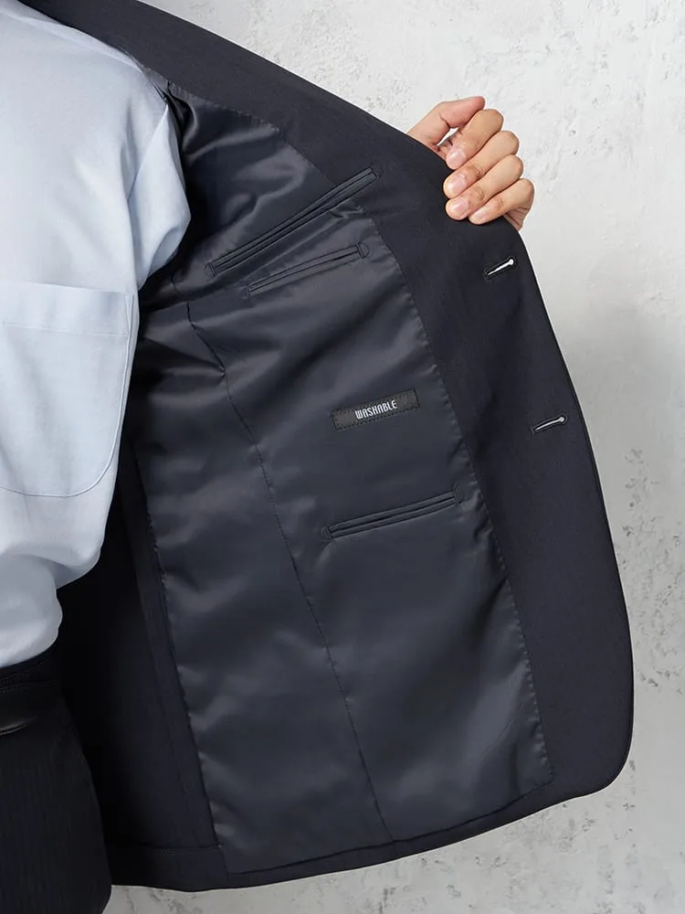 【即納】スーツ2つボタン【WEB限定】上下ウォッシャブルネイビーストライプ