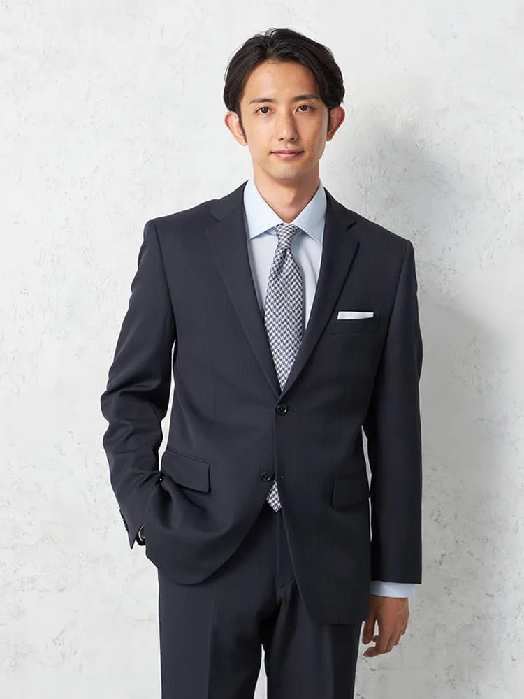 【即納】【WEB限定】スーツ2つボタンネイビーシャドウストライプ上下ウォッシャブル3シーズン対応