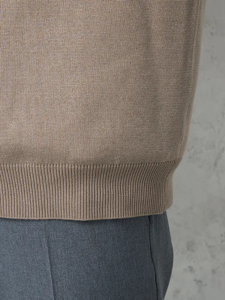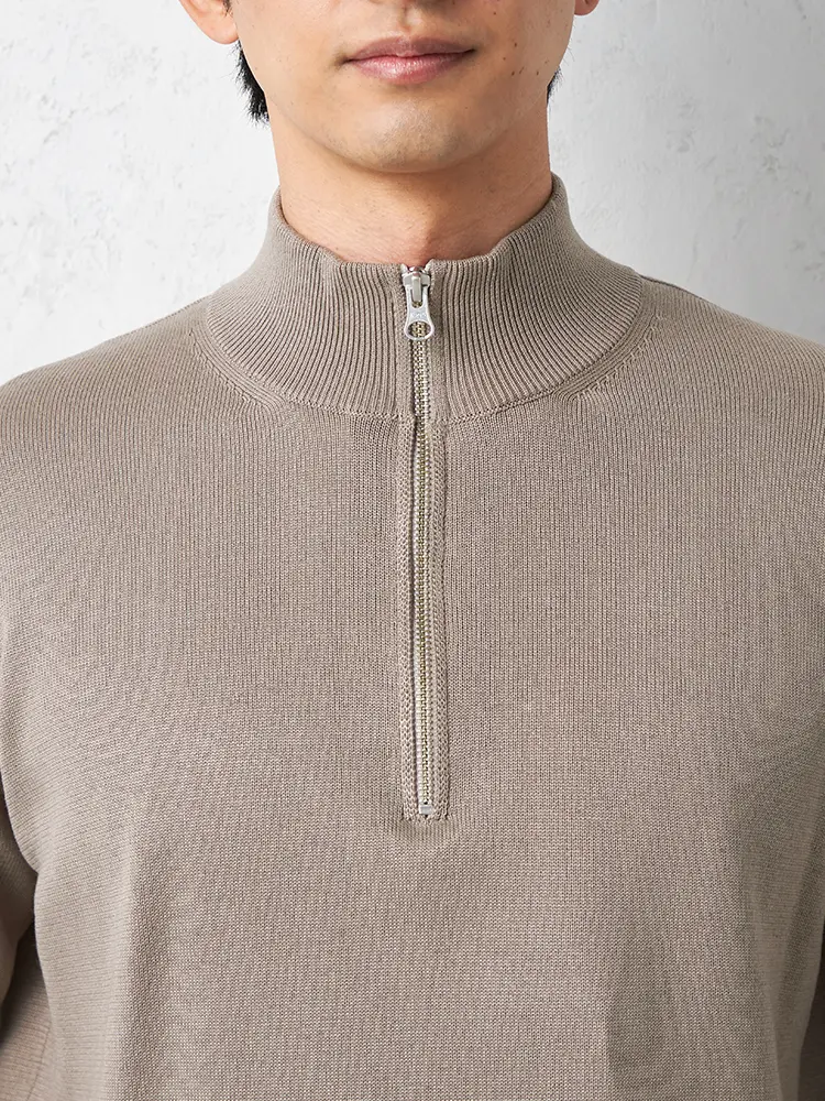 【TOKYO RUN】 12G天竺 ハーフジップニット カジュアルインナー ウォッシャブル 抗ピリング 秋冬(ベージュ)