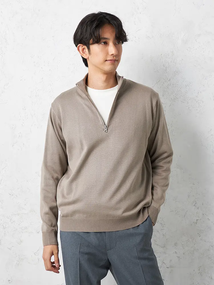 • ベージュ 【TOKYO RUN】 12G天竺 ハーフジップニット カジュアルインナー ウォッシャブル 抗ピリング 秋冬 | はるやま公式通販