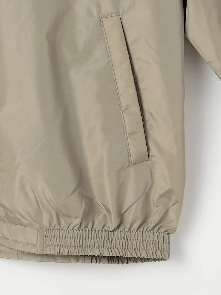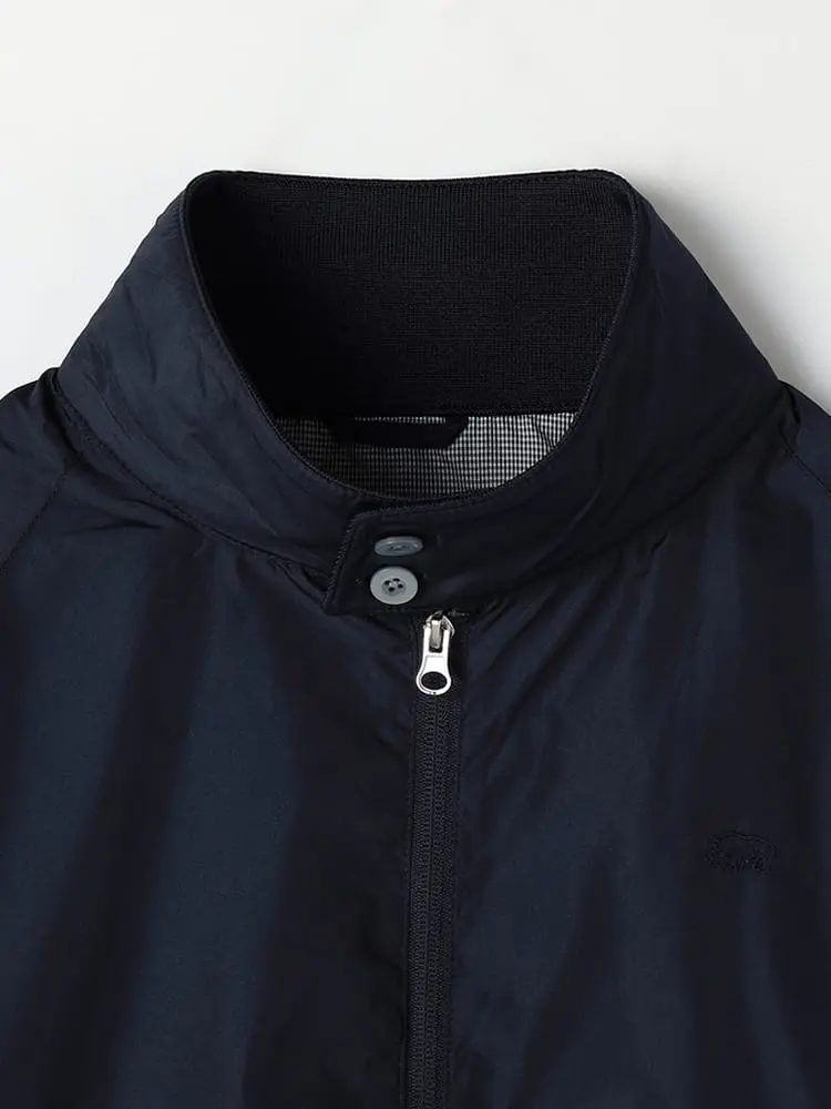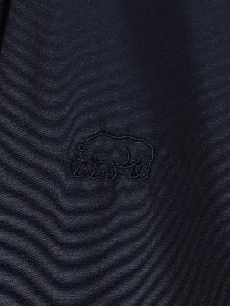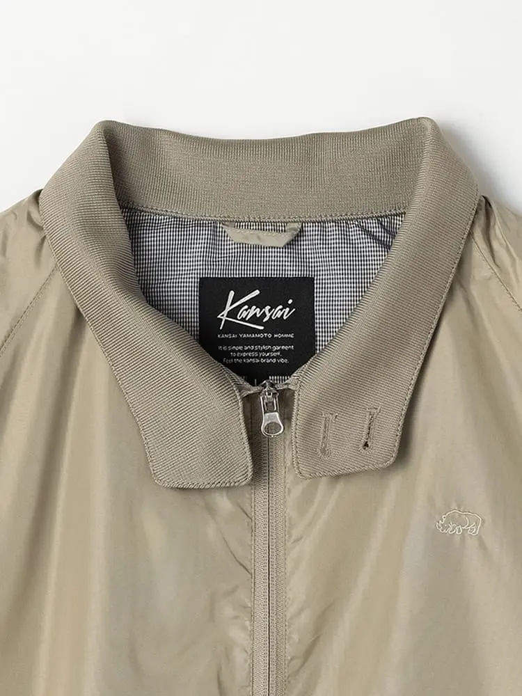 胸元のサイのマークをワンポイントにしたシンプルなジップブルゾン。