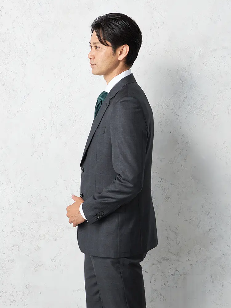 【即納】スーツ2つボタン【WEB限定】上下ウォッシャブルM.グレー小柄3シーズン対応