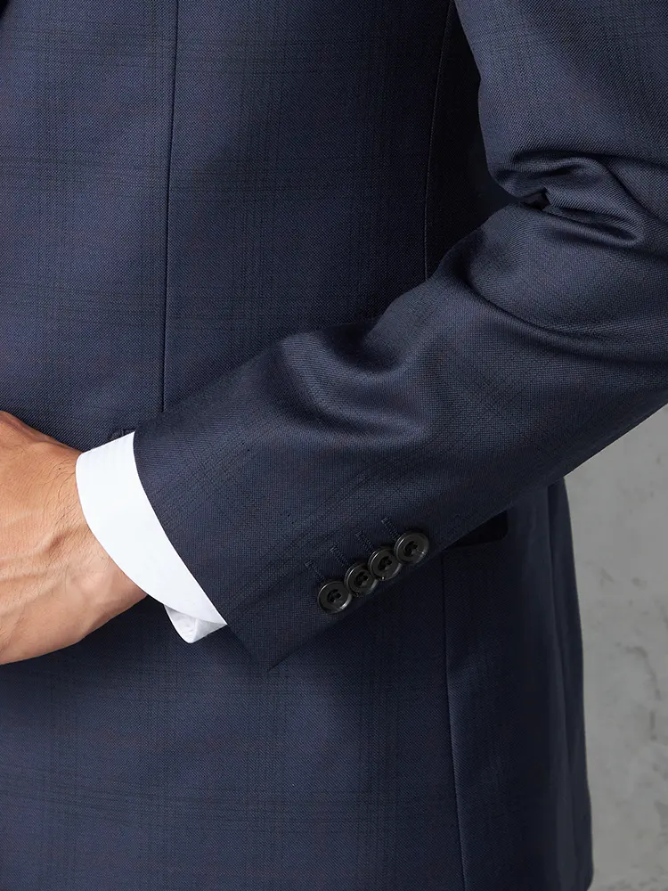 また、胸元に立体感を生む、ラペル毛芯縫製によって品格あるクラッシックスーツに仕上げております。