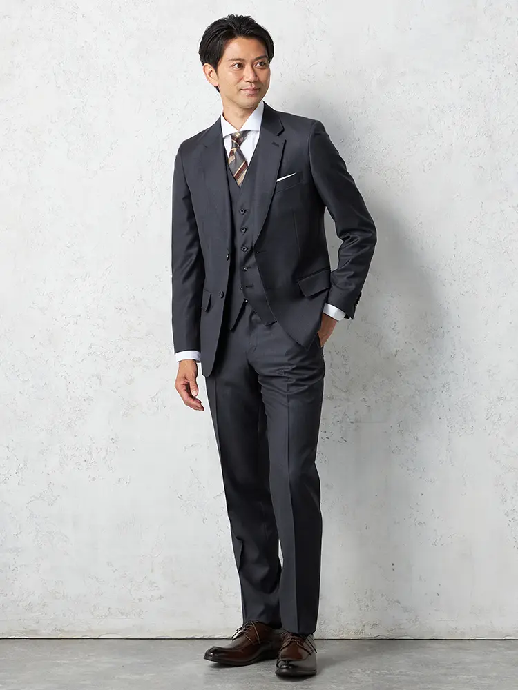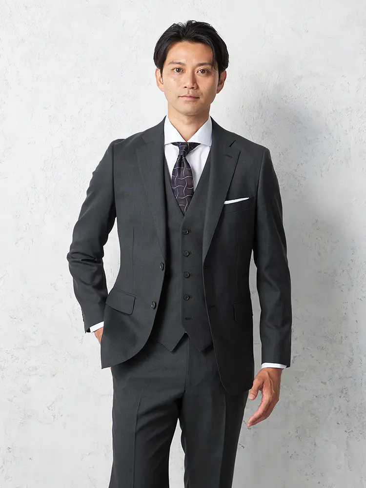【即納】スーツ2つボタン【WEB限定】上下ウォッシャブルM.グレー小柄3シーズン対応