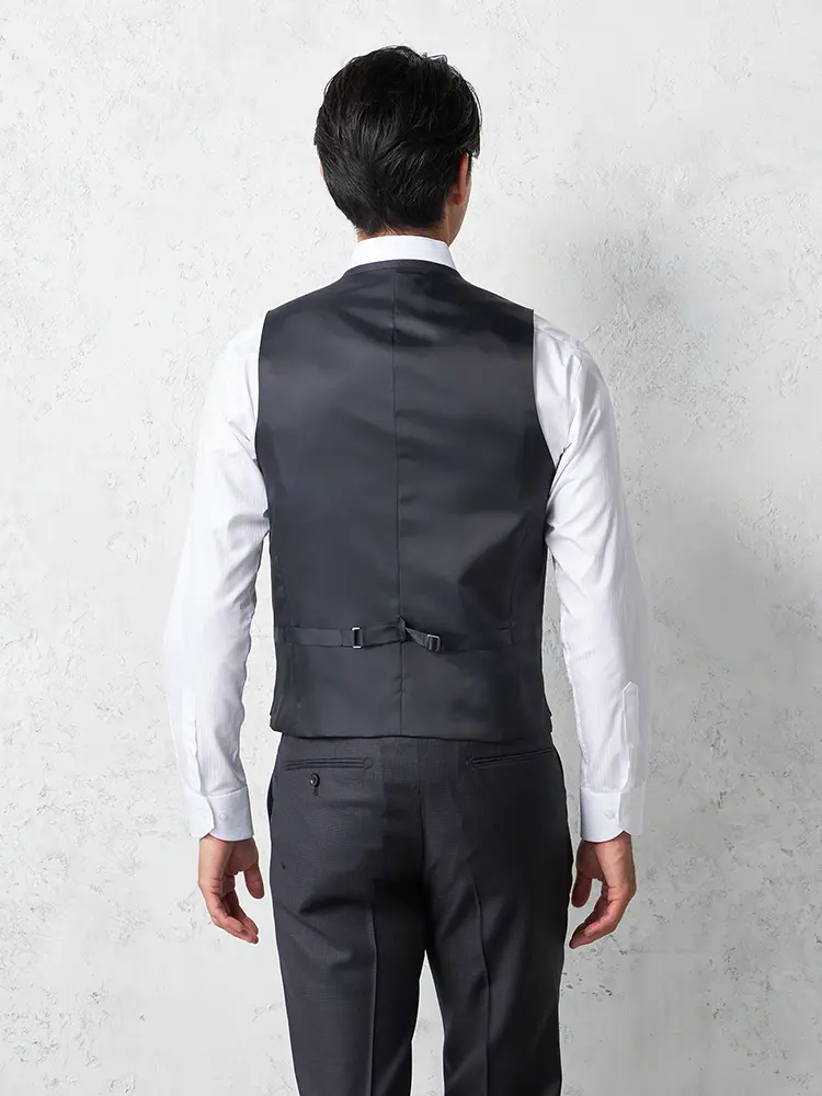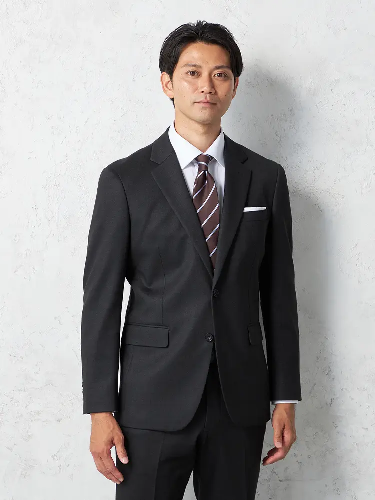 【即納】スリーピーススーツ2つボタン【WEB限定】上下ウォッシャブルブラックシャドウストライプ3シーズン対応
