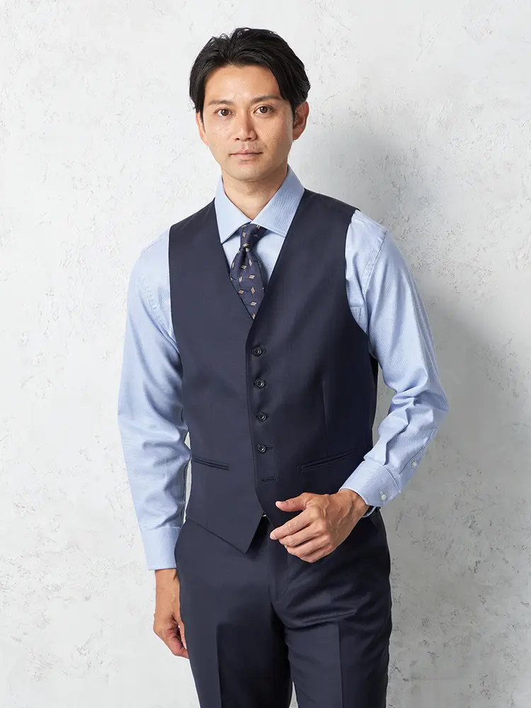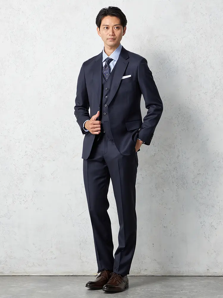 【即納】【WEB限定】スーツ2つボタンネイビーシャドウストライプ上下ウォッシャブル3シーズン対応